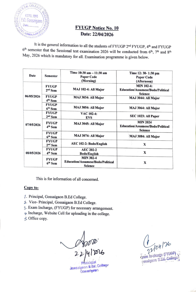FYUGP Notice No. 10
